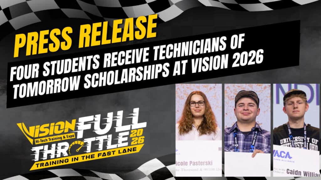 VISION Hi-Tech Training & Expo Opens Applications for 2026 Awards and Scholarships FOR IMMEDIATE RELEASE FOR MORE INFORMATION, CONTACT:Sheri Hamilton, VISION Conference Managersheri@visionkc.com Gladstone, Mo., September 3, 2025 — The VISION Hi-Tech Training & Expo proudly announces the opening of applications for its 2026 scholarships and awards, honoring excellence and achievement throughout the automotive service […]
