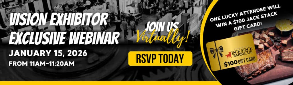 Share your excitement with our exhibitor posting template! Feel free to download and add in your booth number to let people know you’ll be at VISION!