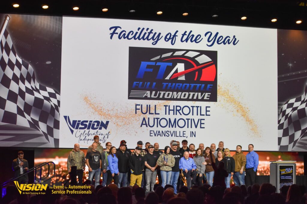 Gladstone, MO – March 25, 2026 – VISION Hi-Tech Training & Expo proudly recognized Full Throttle Automotive of Evansville, Indiana, as the 2026 Service Facility of the Year, honoring the shop’s outstanding commitment to professionalism, customer care, and leadership within the automotive service industry.