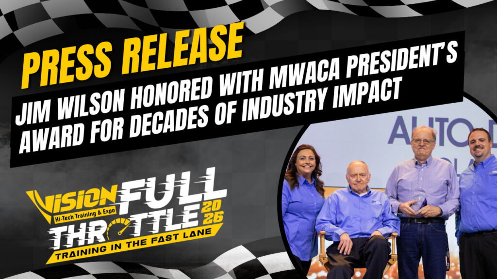 Gladstone, MO – April 2, 2026 – The Midwest Auto Care Alliance (MWACA) proudly presented the 2026 President’s Award to Jim Wilson of AutoDynamics during the VISION Hi-Tech Training & Expo, recognizing his extraordinary service, long-standing dedication, and lasting impact on the automotive service industry.